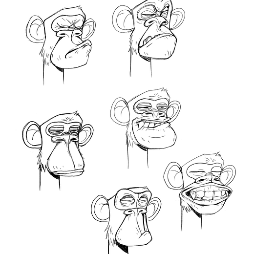 Bored Ape Yacht Club(BAYCもしくはBored Ape)の創業者のGargamel、Gordon Goner、Emperor Tomato Ketchup、No Sass(全員偽名)はCrypto Punksなどが作った、アバターを「PFP」化する、いわゆるプロフィール写真化する現象を見て、アバターにもう少しストーリー性を加えたいと思ってプロジェクトを考え始めた。彼らが想像を膨らませてた時に、今クリプト業界に入った人たちは2031年には億万長者になっていると考え、引退したら「ape」(猿)みたいな生活を送るのではないかと思った。クリプト業界ではものすごい量のお金をかけてNFTや仮想通貨に投資するのを「aping in」と言われているので、そこから猿をコンセプトとしたNFTアバターのアイデアが生まれた。
